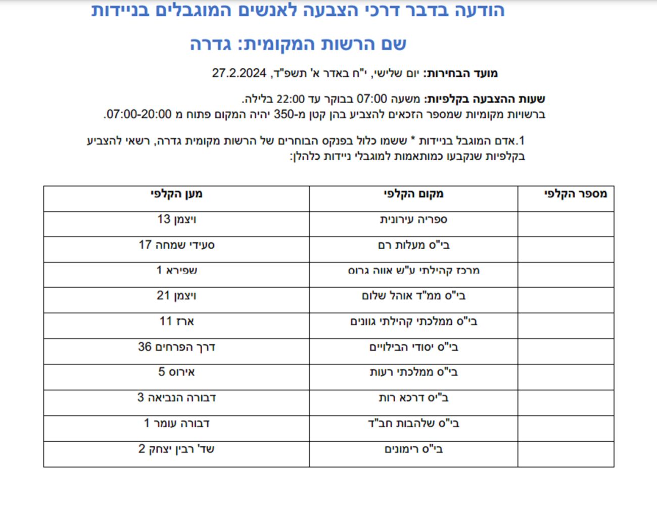 לאיתור קלפי נגישה לבעלי המוגבלות https://www.gov.il/he/Departments/DynamicCollectors/accessible-polling?skip=0