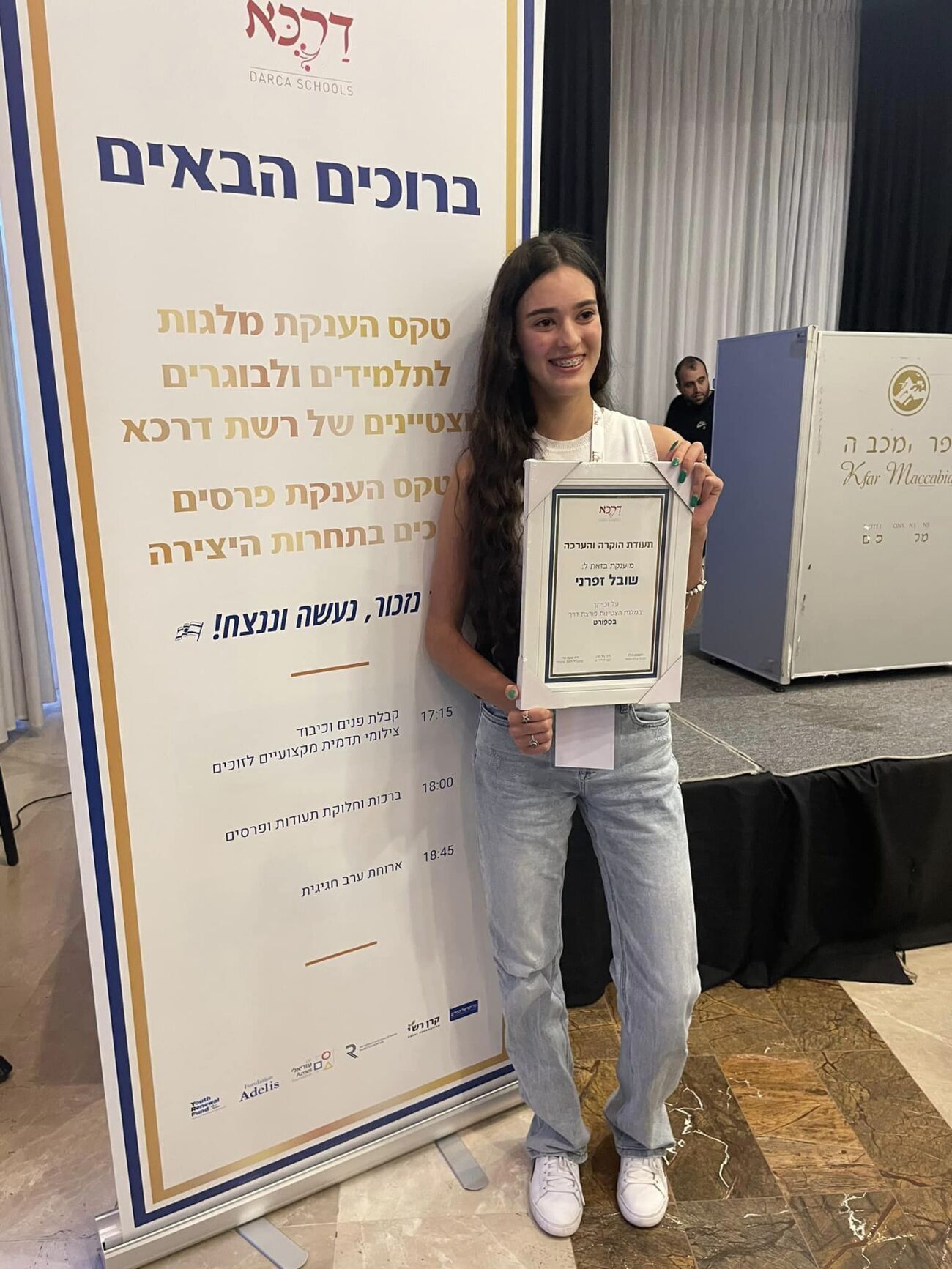 שני קינן זכתה בפרס היצירה על רשומון שכתבה בזמן השבעה באוקטובר בביתה החדש בגדרה, כשהיא חושבת על חבריה בקיבוץ בעוטף עזה. שובל זפרני קיבלה מלגת הצטיינות על הישגיה המרשימים בהתעמלות אומנותית.