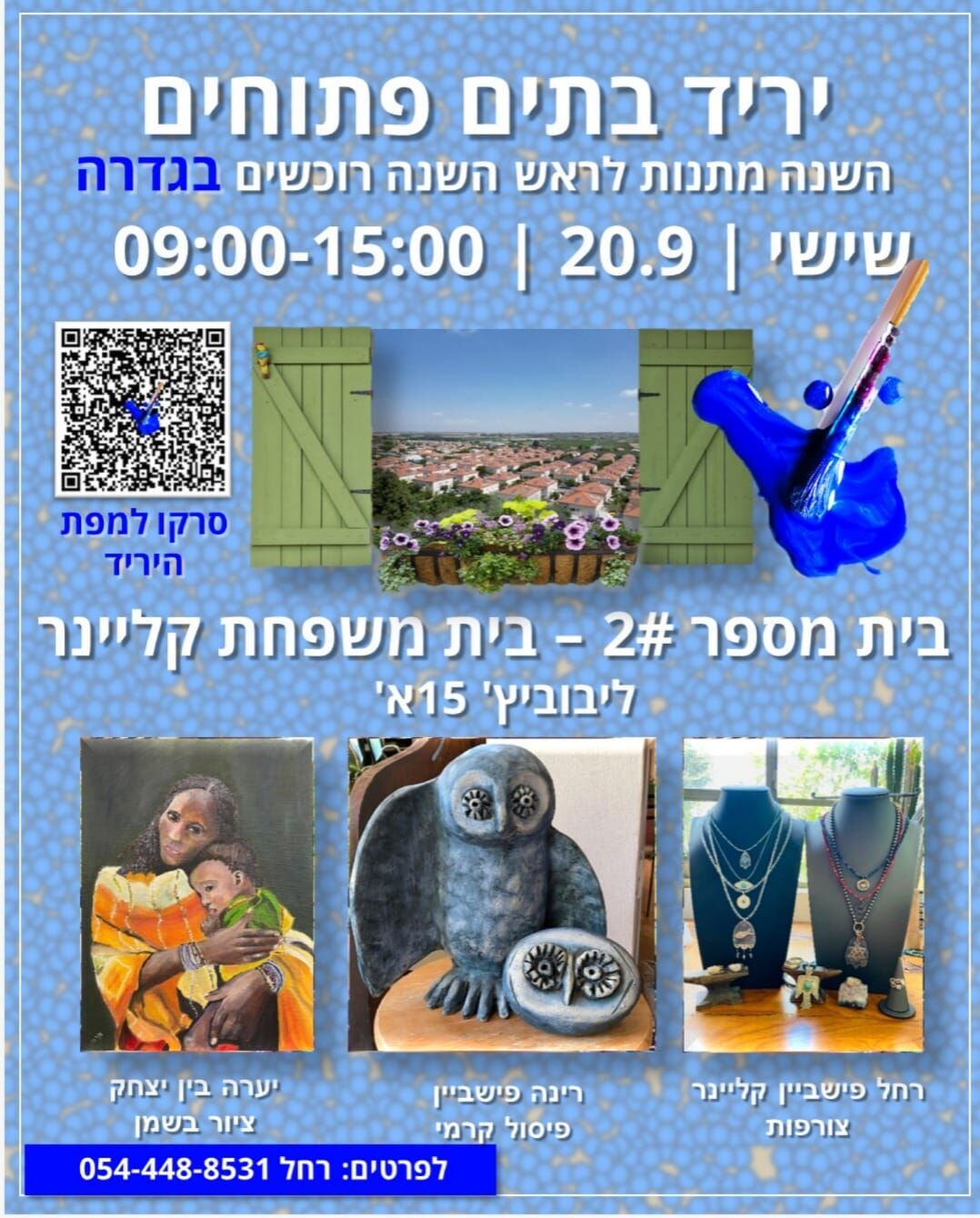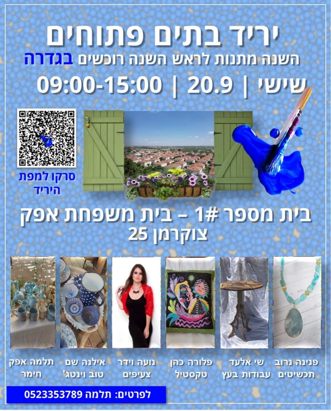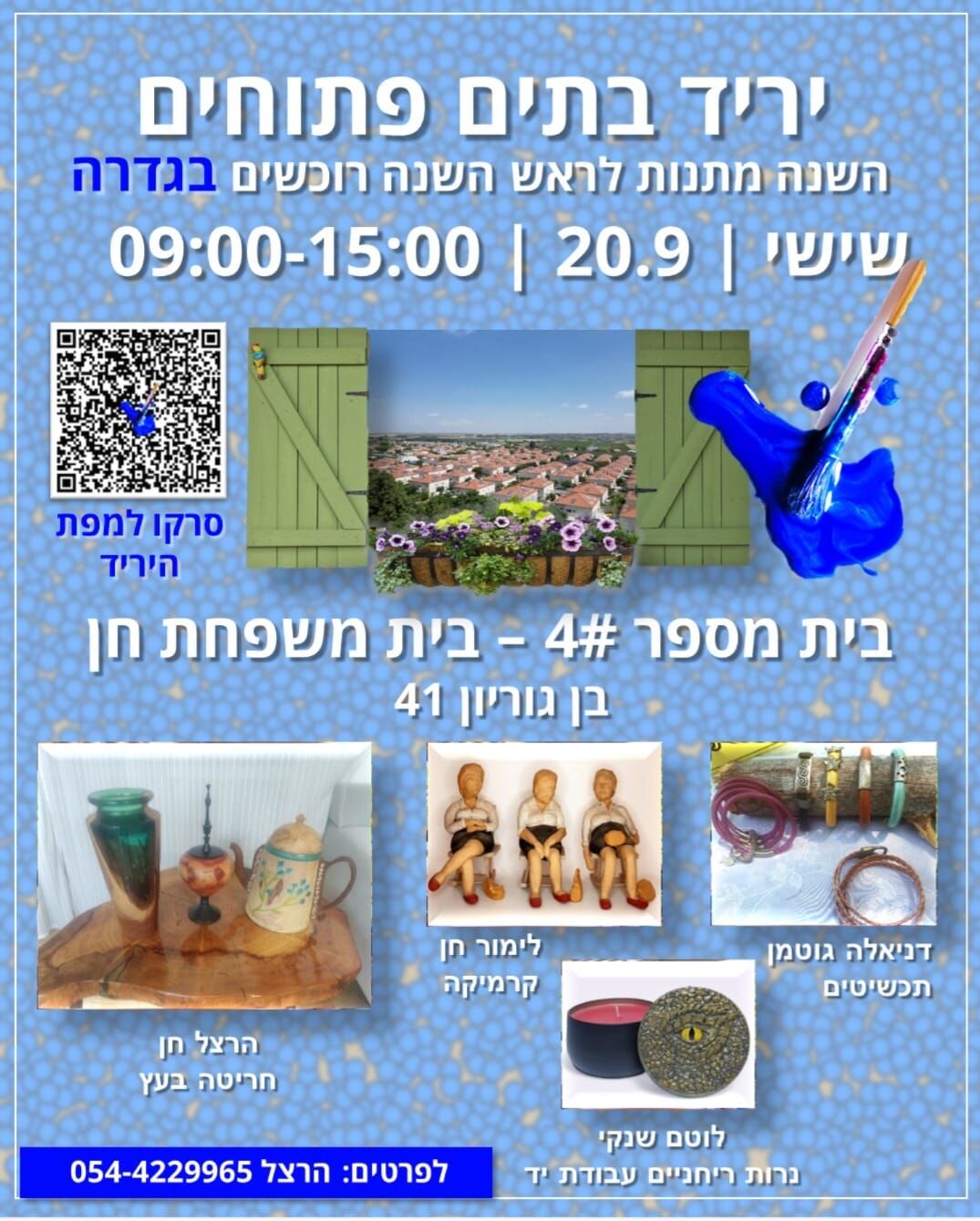 לקראת השנה החדשה יתקיים יריד הבתים הפתוחים המסורתי של של אמני גדרה. במסגרת האירוע יפתחו התושבים את בתיהם עם מבחר גדול של יצירות אמנות, בגדים, תכשיטים, כלי נוי ועוד ועוד.