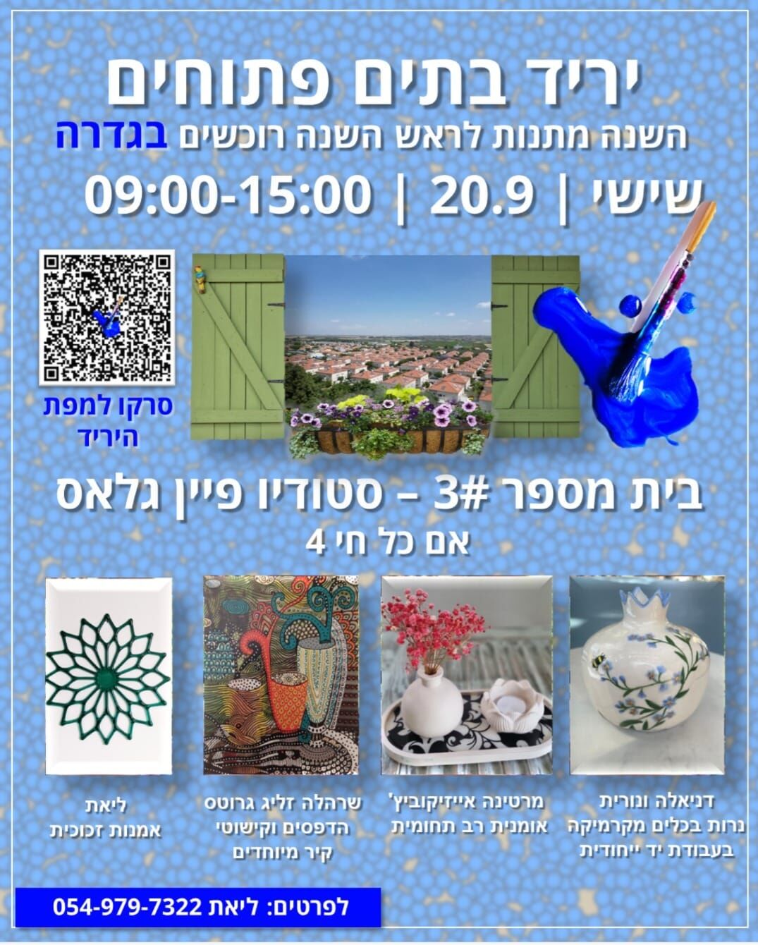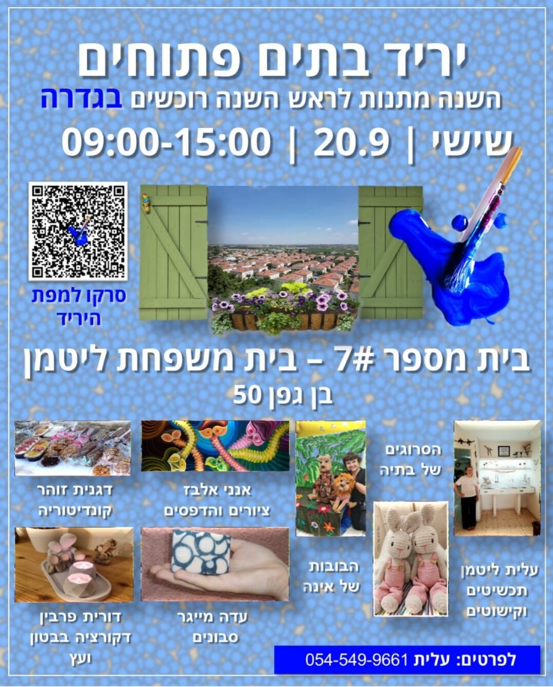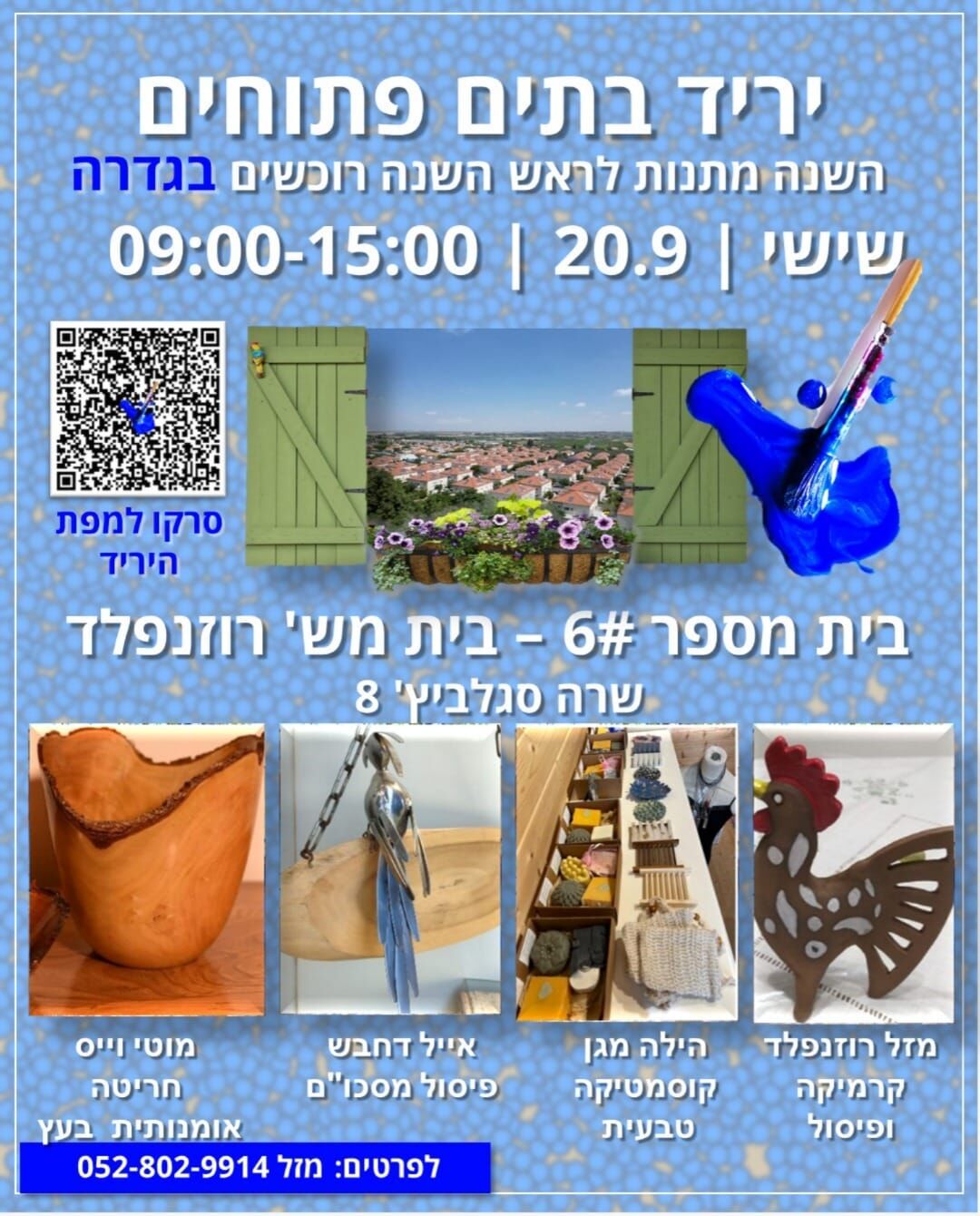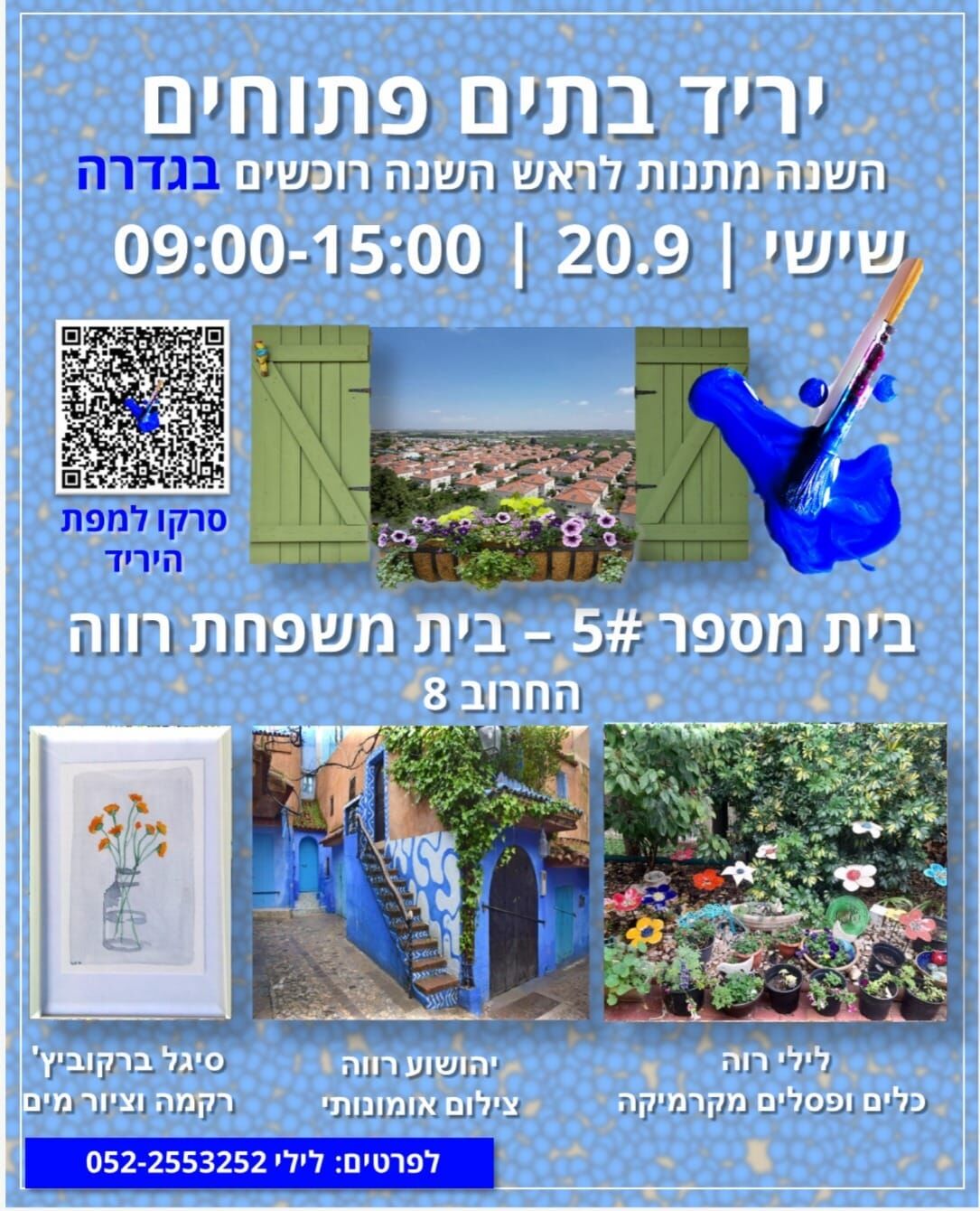 לקראת השנה החדשה יתקיים יריד הבתים הפתוחים המסורתי של של אמני גדרה. במסגרת האירוע יפתחו התושבים את בתיהם עם מבחר גדול של יצירות אמנות, בגדים, תכשיטים, כלי נוי ועוד ועוד.
