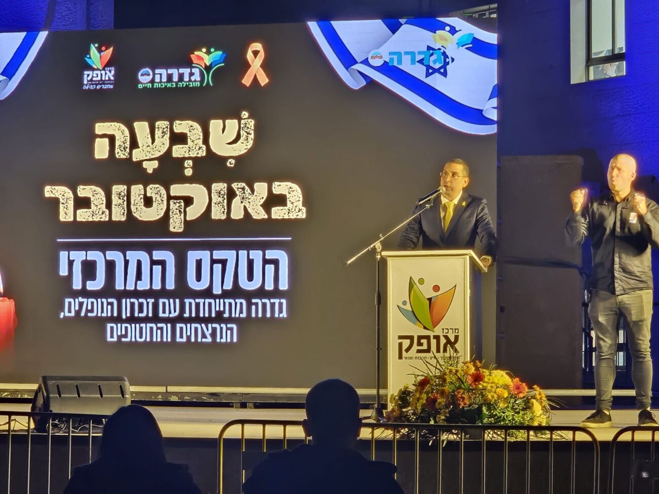 "יש תאריכים שיישארו איתנו לנצח. תאריכים שגם בעוד עשרות שנים יזכור בוודאי כל אחד ואחת מאיתנו, היכן היה ומה עשה באותו מועד. שבת השבעה באוקטובר, שבת של שמחת תורה שהפכה מחג - לאסון נורא, היא אחד מאותם מועדים, תאריך שנחקק בקורותיה של המדינה ובליבנו, לעד. למרות ששנה כבר עברה, עודנו מתקשים לעכל את גודל האסון, את המחיר הכבד ששילמה החברה הישראלית, מחיר שלא פסח גם עלינו, בגדרה. המעמד שאנו מקיימים כאן היום הוא בראש ובראשונה, מעמד של הוקרה ושל געגוע. לא נשכח את בנות ובני המושבה שנפלו בשנה האחרונה".