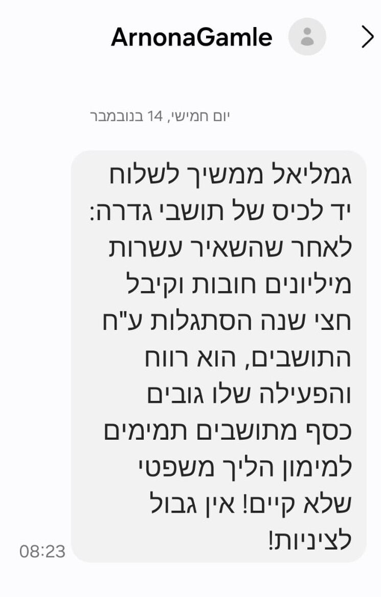 "יש בפרסום הנ"ל משום השפלת התובע, ביזויו ופגיעה בשמו הטוב ובמשרתו, במיוחד מקום שהפרסום נעשה סמוך ביותר למועד הבחירות למועצה המקומית גדרה שהיה קבוע באותה עת ליום ,31.10.23 תוך ניסיון להציג את התובע כאדם מושחת העושה שימוש במשאבים הציבוריים לטובתו האישית, ובכוונה לפגוע בו, בידיעה שהדברים אינם נכונים", נכתב בכתב התביעה