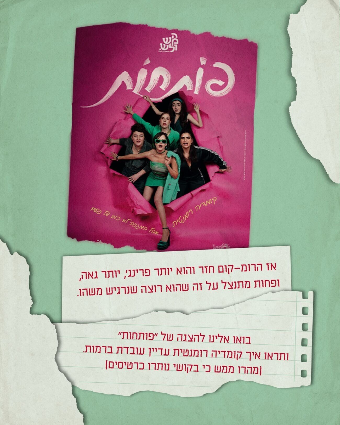 הקומדיות הרומנטיות עושות קאמבק תרבותי, והפעם הן גאות, חצופות ואינן מתנצלות. במסגרת מגמה זו, ההצגה ״פותחות״ מבית תיאטרון המשולש חוזרת לבמה במרכז הגאה בתל אביב.