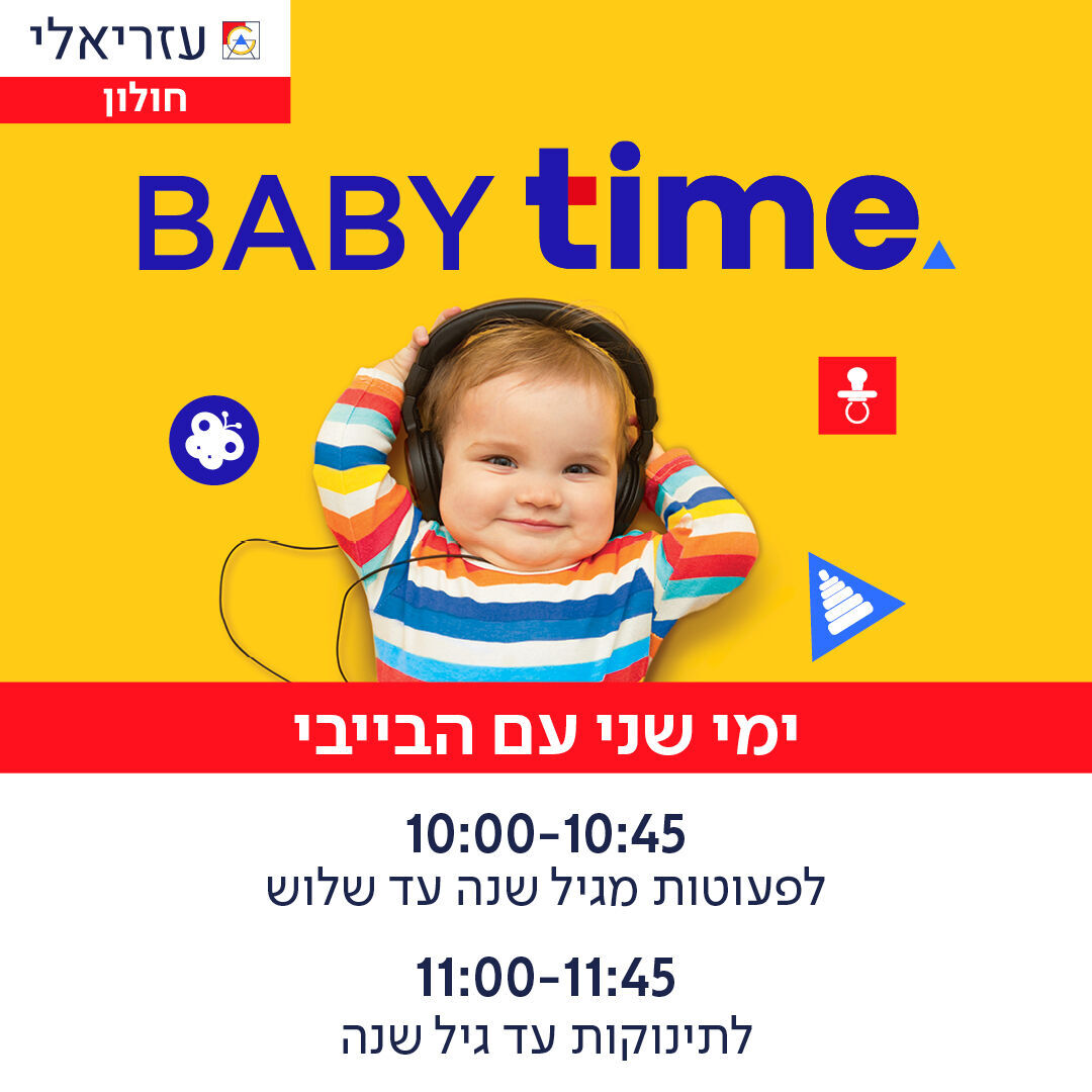 הכניסה למפגשי "בייבי טיים" הינה חופשית, אך מספר המקומות מוגבל וההשתתפות היא על בסיס מקום פנוי. תאריכי הפעילות המצוינים הם: 12.01.26, 19.01.26 ו-26.01.26.