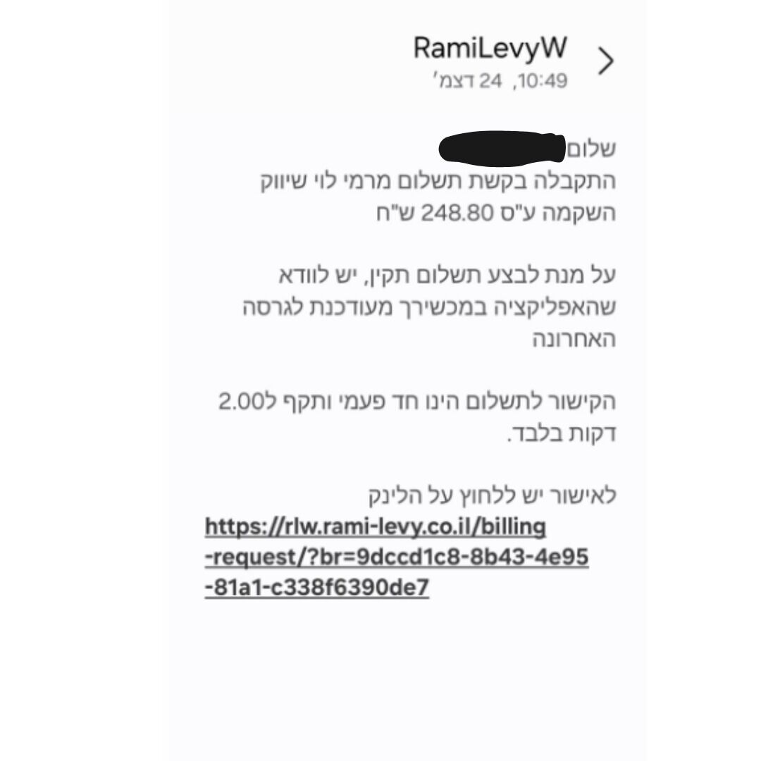 מדובר בהונאה! ההודעות הללו אינן נשלחות על ידי רשת רמי לוי שיווק השקמה.
