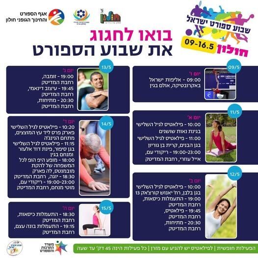 עיריית חולון מודיעה על פתיחתו של "שבוע הספורט בחולון", שבוע המוקדש לפעילות גופנית, אנרגיה והנאה לכל המשפחה.