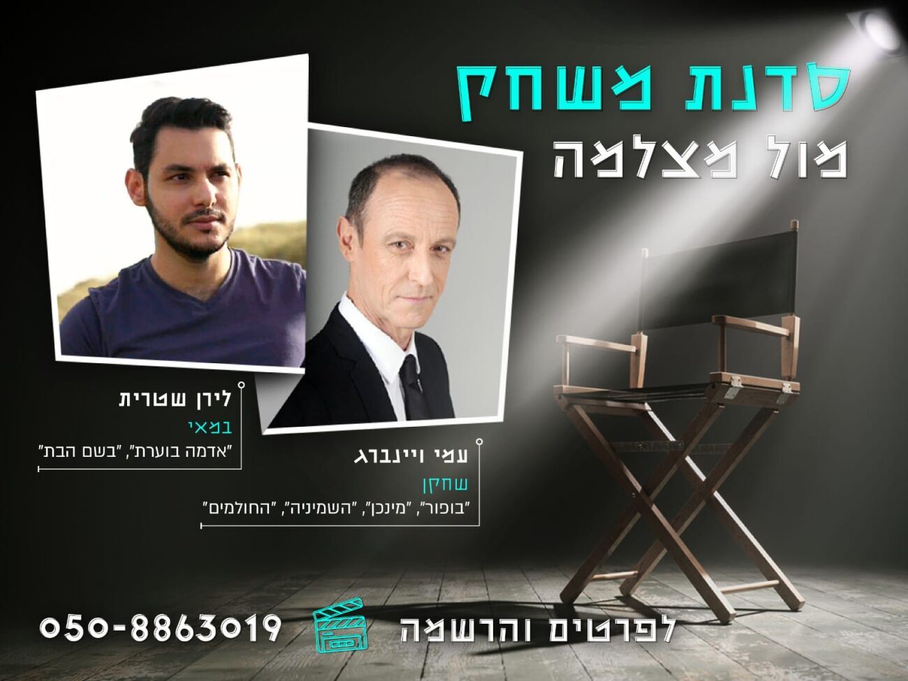 סדנת משחק מול מצלמה בהנחיית הבמאי לירן שטרית והשחקן עמי ויינברג תיערך בחולון בחודשים אוגוסט-ספטמבר. לפרטים נוספים ולהרשמה: 050-8863019.