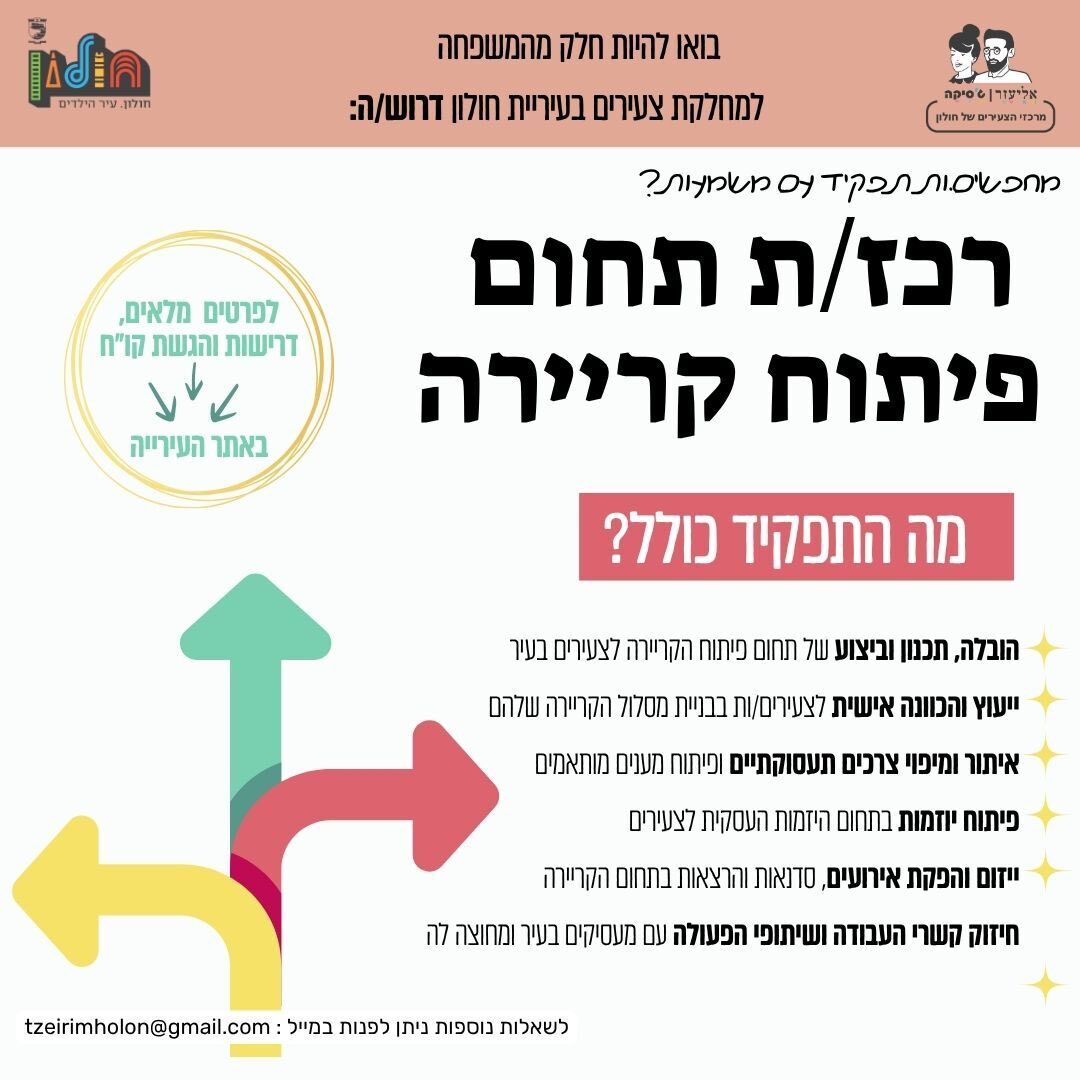 - רכז/ת פיתוח קריירה - לפרטים והגשת מועמדות ניתן להיכנס לקישור: https://did.li/vf7aa