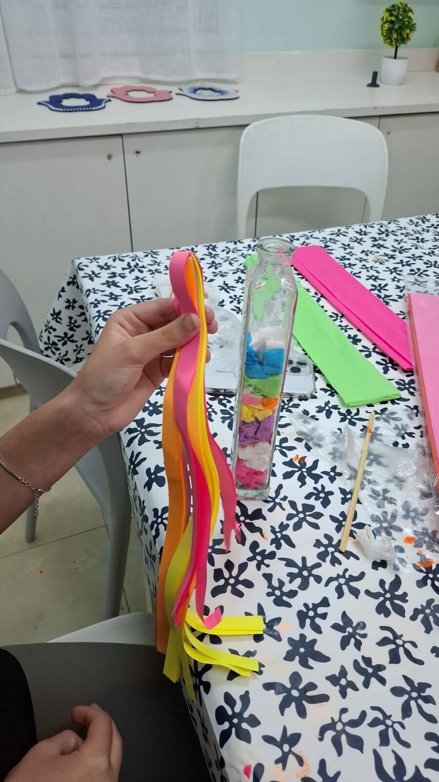 הפעילות נפתחה בשיחה על משמעות האור – מה הוא מסמל וכיצד ניתן להאיר גם רגעים מאתגרים. המשתתפות שוחחו על נס החנוכה, והבנות במקום שיתפו בחום ובפתיחות על ניסים קטנים שמלווים אותן בחיי היום־יום.