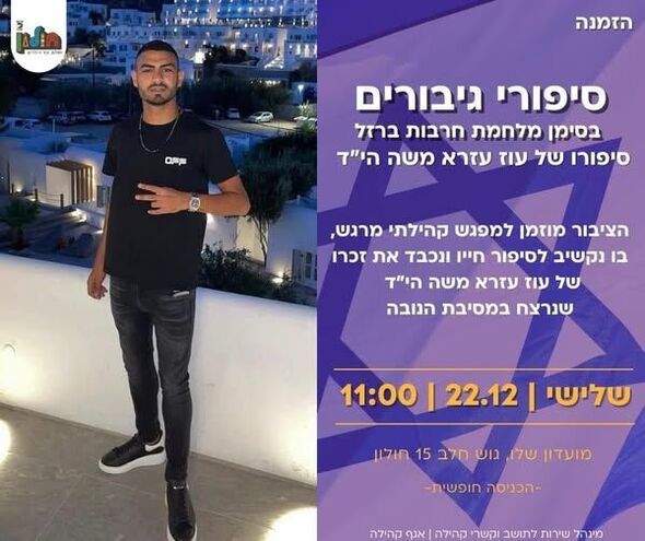 מועדון גמלאים שליו במרכז קהילתי וולפסון בחולון יקיים אירוע לזכרו של עוז עזרא משה ביום שני ה-22.12