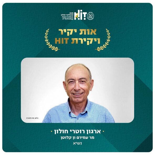 HIT מכון טכנולוגי חולון יעניק את אות "יקיר ויקירת HIT" לשנת 2025 לנשיא ארגון רוטרי חולון, ון קלוטן