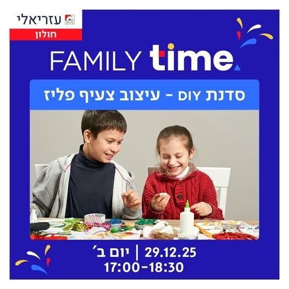 קניון עזריאלי חולון יקיים סדנת DIY (עשה זאת בעצמך) מיוחדת כפעילות חורפית המיועדת לילדים ולהורים. במסגרת הפעילות, המשתתפים יוזמנו ליצור יחד ולצאת עם צעיף פליז בעיצוב אישי.