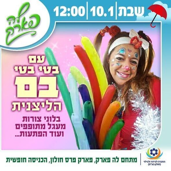 ביום שבת, ה-10 בינואר 2026, בשעה 12:00, יתקיים מופע שמח וקצבי המיועד לכל המשפחה במתחם לה פארק, הממוקם בפארק פרס בחולון. המופע, בכיכובה של "בטי בטי בם", יכלול שירים, ריקודים וחלוקת בלוני צורות.
