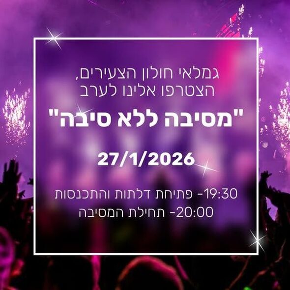 גמלאי חולון הצעירים מוזמנים להצטרף לערב מיוחד תחת הכותרת "מסיבה ללא סיבה", בהשתתפות אבי ונטורה. האירוע יתקיים ביום שלישי, ה-27 בינואר, במרכז לאזרחים ותיקים הממוקם ברחוב אלחריזי 17 (המעפילים 64) בעיר.