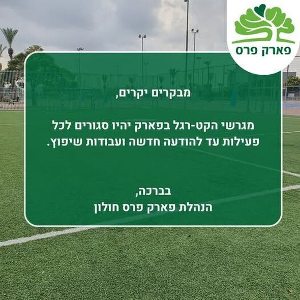 הודעה לציבור המבקרים בפארק פרס בחולון: מגרשי הקט-רגל נסגרים לטובת עבודות עד להודעה חדשה