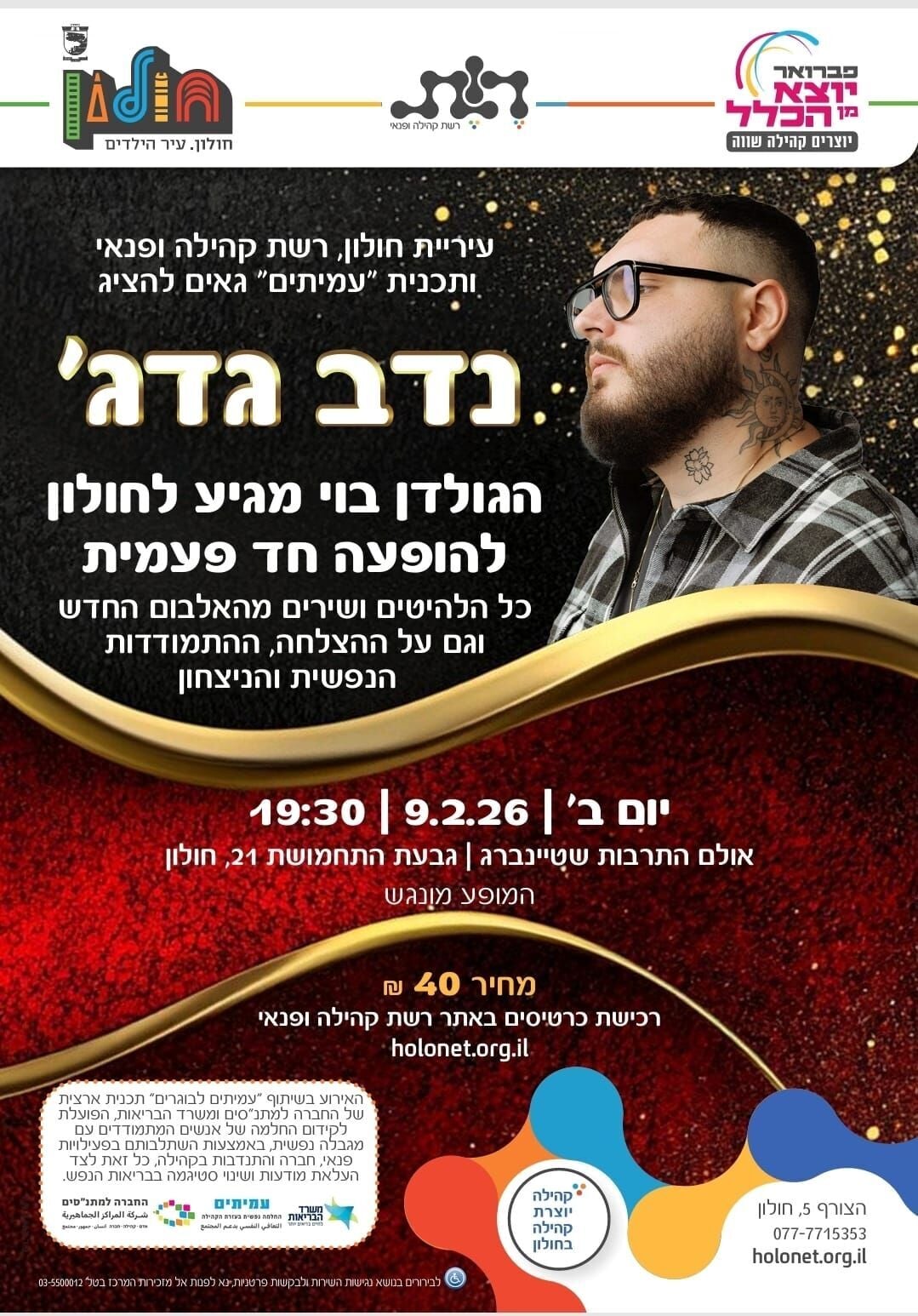 פברואר יוצא מן הכלל בחולון: חודש המודעות לאנשים עם מוגבלויות ומופע מרכזי של נדב גדג' ב-9.2.26