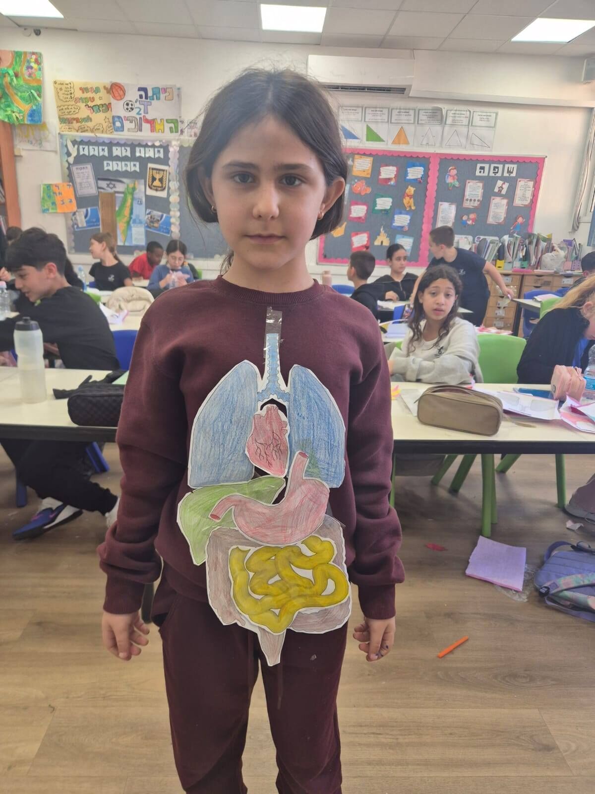 מתוך התמונות ששותפו מהפעילות בבית הספר, ניכר כי במהלך השיעורים התלמידים למדו על האיברים הפנימיים השונים והרכיבו מודלים צבעוניים ומאוירים של האיברים, שאותם ענדו אל מול גופם. המודלים, שכללו בין היתר את הלב, הריאות, הכבד, הקיבה והמעיים, נועדו להמחיש בצורה חזותית וברורה את מיקומם המדויק של האיברים בגוף האדם. דרך פעילות ייחודית זו, התלמידים זכו להעמיק את הבנתם במדעים בצורה מקורית, מהנה ואינטראקטיבית.