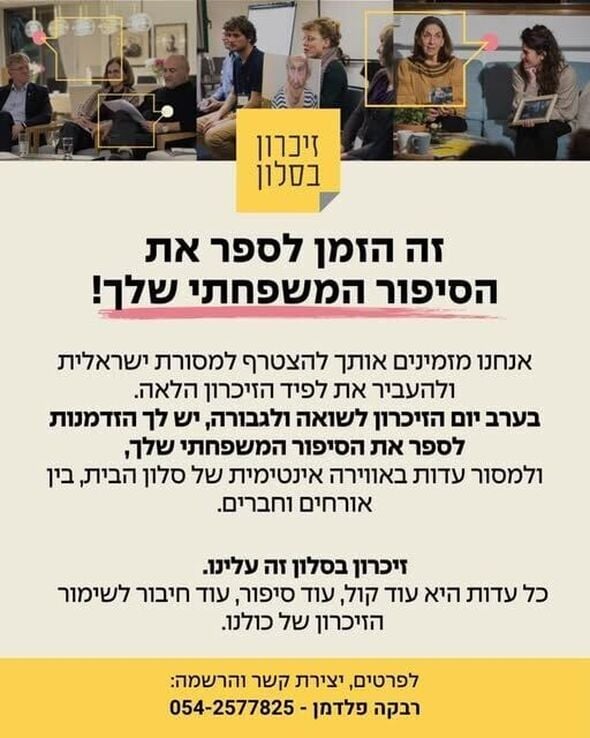 לפרטים נוספים אודות הפעילות וההתנדבות בעיר ניתן לפנות לרבקה פלדמן, מובילת קהילת "זיכרון בסלון" בחולון, בטלפון: 054-2577825.