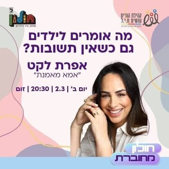 ההרצאה, אותה תעביר אפרת לקט המוכרת כ"אמא מאמנת", תעסוק בשאלה כיצד להשיב לילדים ששואלים על המלחמה, על הפחד ועל מועד סיומה, גם כאשר להורים עצמם אין תמיד את כל התשובות. המשתתפים יקבלו כלים מעשיים, דוגמאות ותשובות מותאמות גיל, שיעזרו להם להוות מקור של ביטחון עבור הילדים בימים של חוסר ודאות.