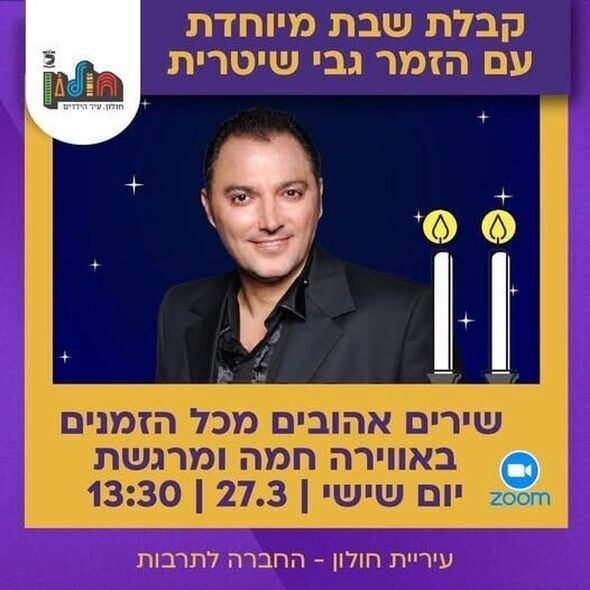 עיריית חולון והחברה לתרבות מזמינות את ציבור התושבים לקבלת שבת מיוחדת באווירה חמה ומרגשת. האירוע ייערך באופן מקוון ויועבר בשידור חי בהשתתפות הזמר גבי שיטרית.