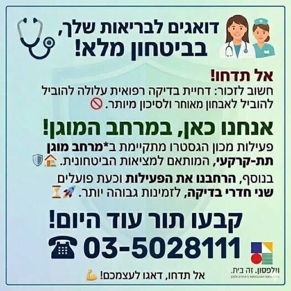 המרכז הרפואי וולפסון קורא לא לדחות בדיקות: מכון הגסטרו פועל במרחב מוגן תת-קרקעי