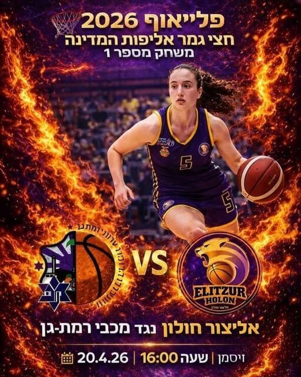 משחק מספר 1 בחצי גמר אליפות המדינה בכדורסל: אליצור חולון תתמודד מול מכבי רמת-גן (20.4.2026)