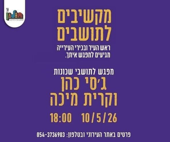 כנס "מקשיבים לתושבים": ראש עיריית חולון ייפגש עם תושבי ג'סי כהן וקריית מיכה ב-10 במאי 2026