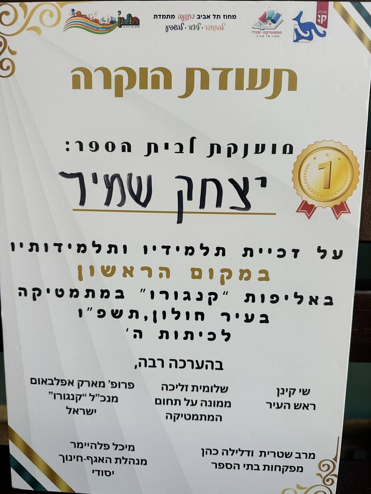 גאווה מקומית: תלמידי בית הספר יצחק שמיר בחולון זכו במקום הראשון באולימפידע למתמטיקה בעיר