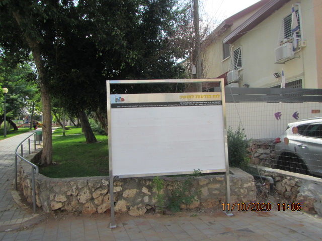 בנוסף, הותקנו שני לוחות מודעות נוספים בשכונת נווה ארזים, שמיועדים לפרסומים קהילתיים שנוגעים לשיתוף הציבור שמתקיים בימים אלה בנושא שינויי תב"ע בשכונה – האחד הוצב בסמוך למרכז הקהילתי, ברחוב ישעיהו 16 והשני ברחוב יאיר הגלעדי 7.