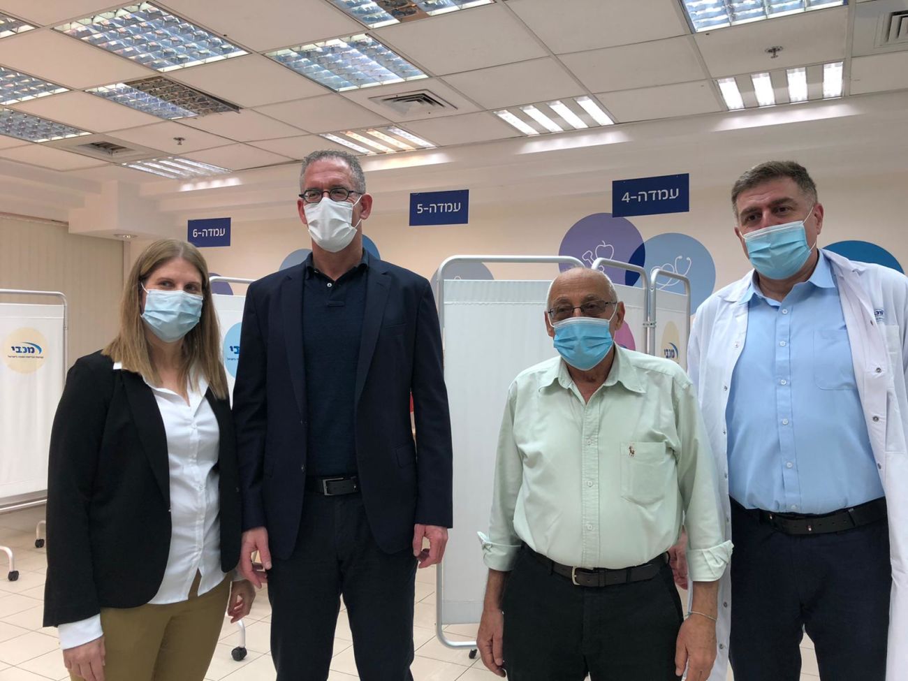 ראש מחוז ירושלים והשפלה במכבי ד"ר חגי פרנקל הגיע ראשון למתחם, התחסן ראשון ובכך פתח את מבצע החיסונים ההיסטורי. ביום הראשון לחיסונים כבר הגיעו להתחסן במקום מאות חברי מכבי וצוותים רפואיים.