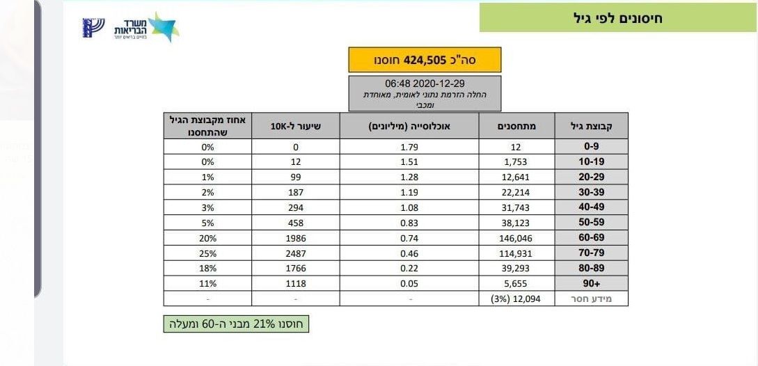 מפילוח גילאי המתחסנים עולה כי 74% מהם בגילאי 60+