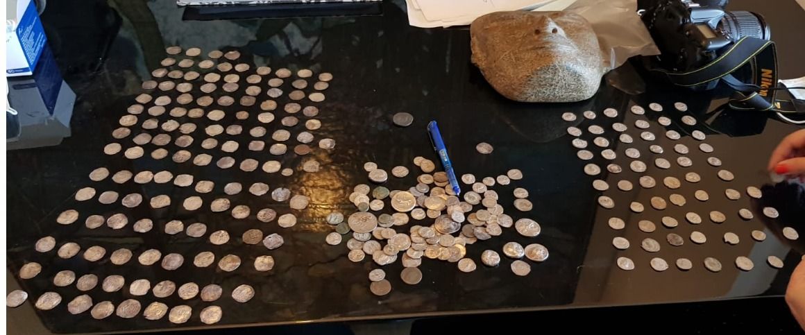 במהלך החיפוש חשפו מצבור עצום של מאות פריטים החשודים כעתיקים בני יותר מ – 2000 שנים, הכוללים כלי חרס שונים – כדים וצלחות, מטבעות וכיו' , כאשר כלל המוצגים הועברו להמשך בחינה מקצועית של רשות העתיקות.