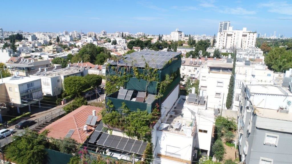 עם 6 יחידות דיור והתקנת 70 מתקנים פוטו-וולטאים על גג הבית.