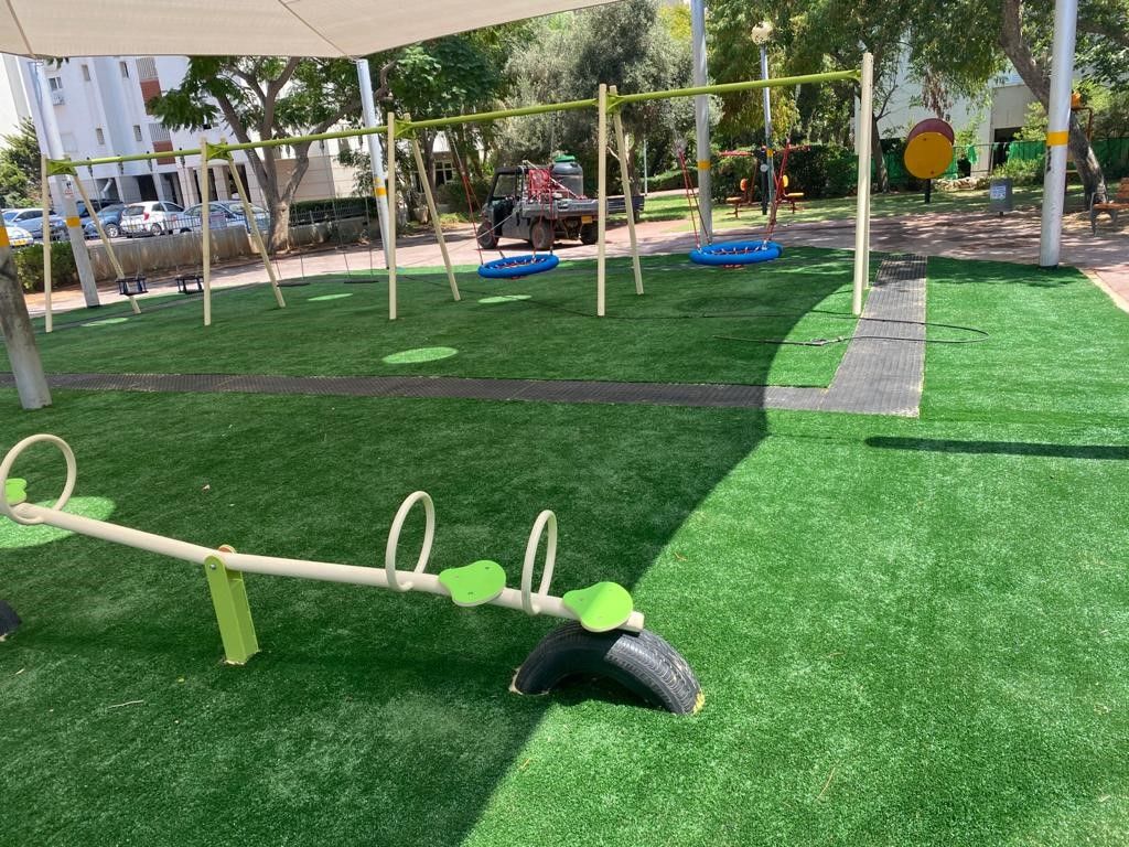 במסגרת העבודות הורד מפלס המתקנים לגובה פני הקרקע, הותקן משטח דשא סינתטי חדש והוצבו מתקנים חדשים, שכוללים חוות נדנדות וספינת משחק משולבת מגלשה. כמו כן, הגינה הונגשה בהתאם לתקני הנגישות הנדרשים.