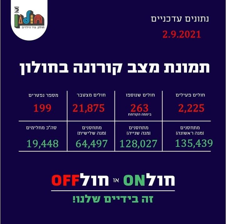 נתוני התחלואה בחולון ליום חמישי 2.9.21