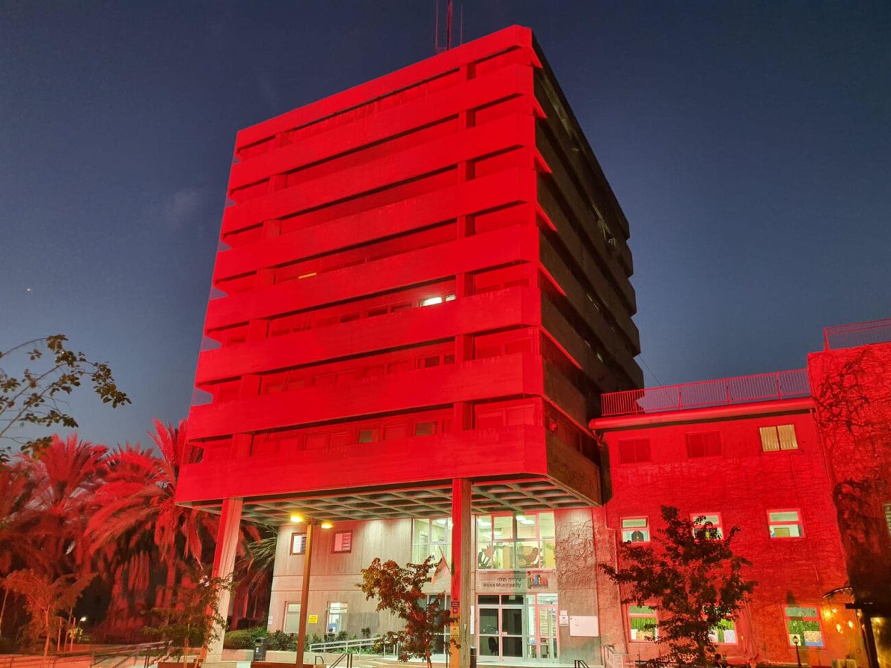 במסגרת הפעולות למיגור אלימות כלפי נשים ובמשפחה, עיריית חולון האירה את בניין העירייה באדום!