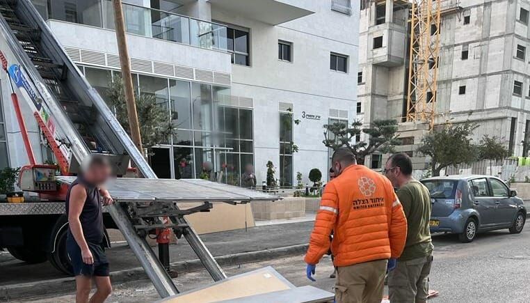 גבר בן 30 נחבל לאחר שארון שהונף במנוף בחולון נפל על ראשו
