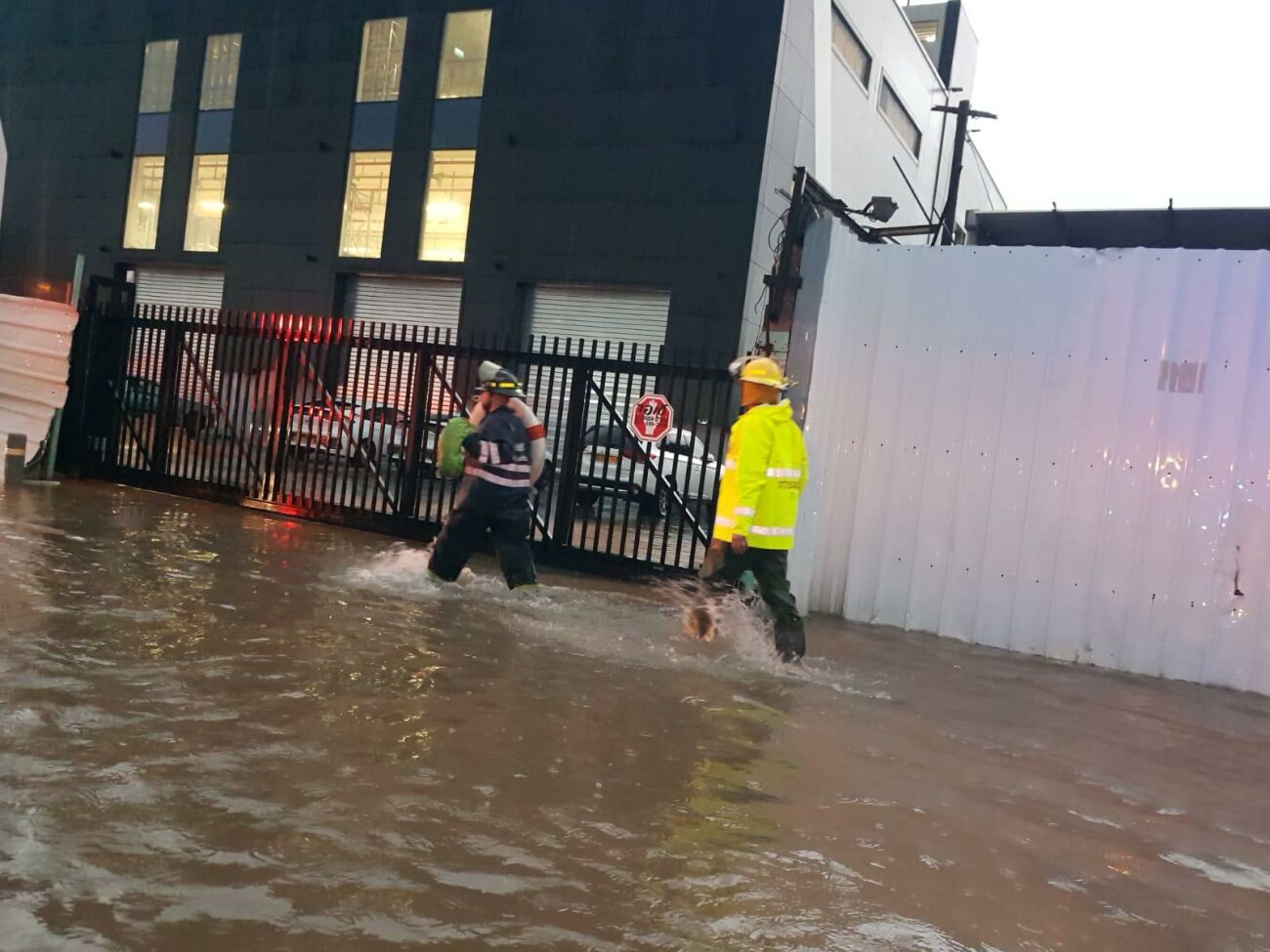 ברח׳ תמנע בחולון שהוצף כולו במים חולצו 4 לכודים בשלום.