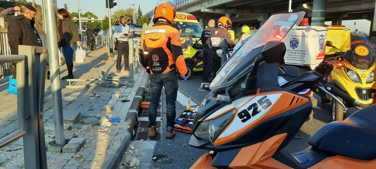 צוותי הרפואה של איחוד הצלה העניקו סיוע ראשוני להולכת רגל שנפגעה מרכב ביציאה מחולון. (לכיוון כביש 20 דרום).