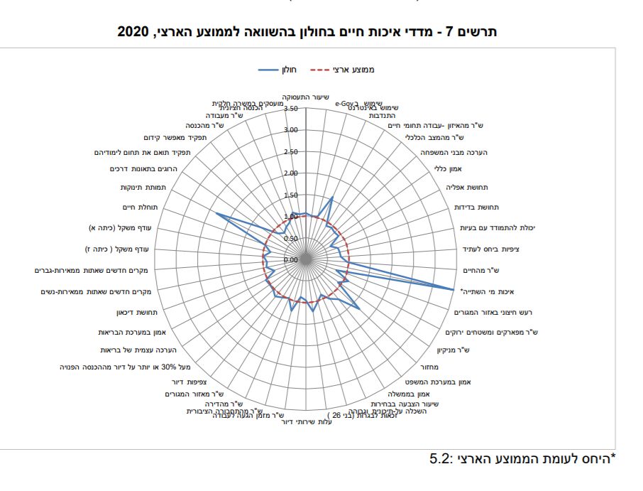 מצבה של חולון היה טוב במיוחד לעומת הממוצע הארצי במדד: