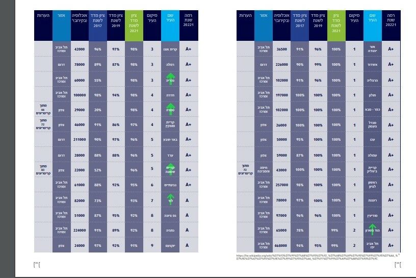 12 הערים שהגיעו למקום הראשון במדד 2021 וקיבלו ציון 100% הן: