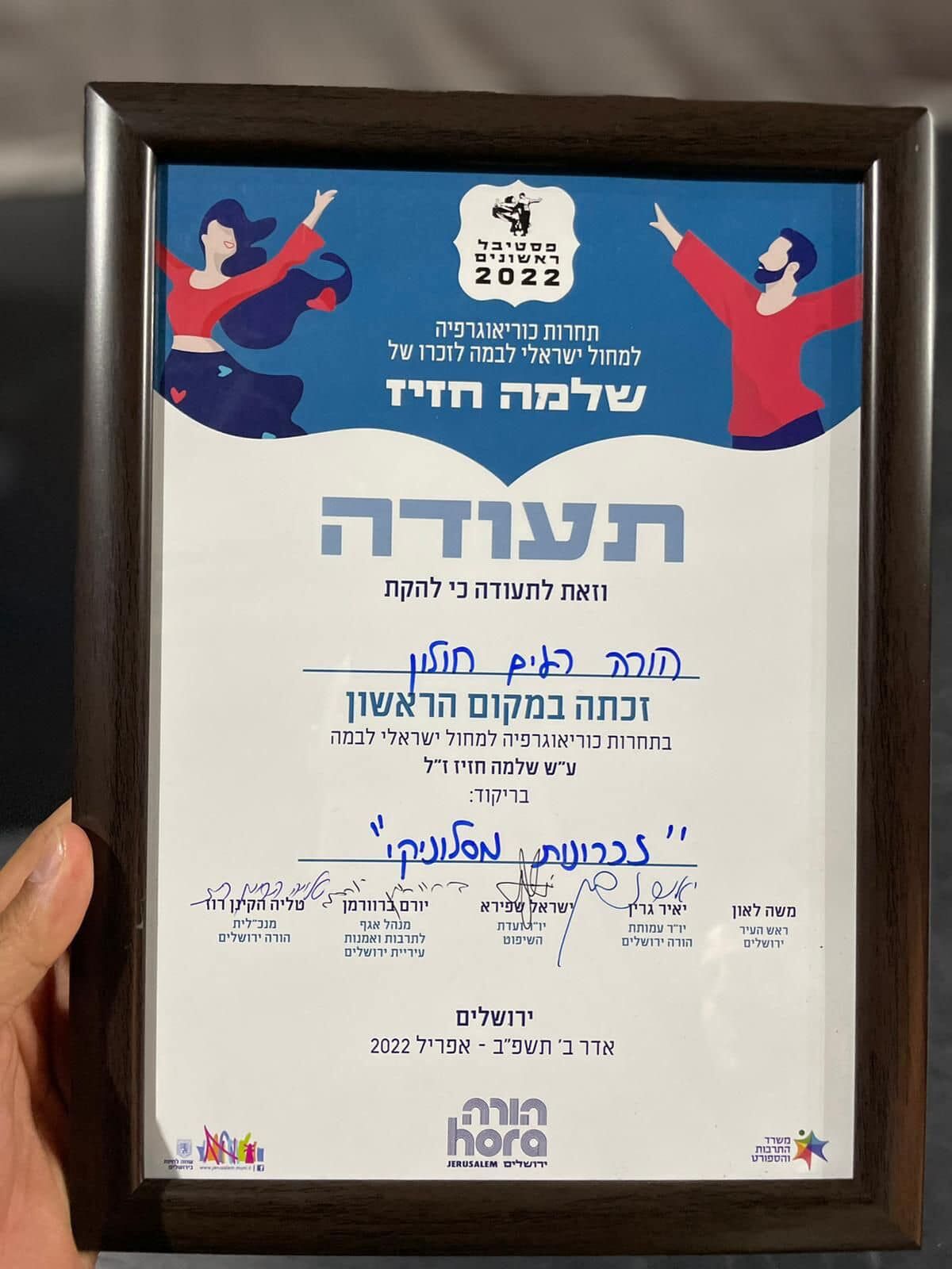 להקת הורה חולון מחולון זכו במקום הראשון בפסטיבל "ראשונים" בירושלים, תחרות הכוריאוגרפיה הארצית למחול ישראלי בהשתתפות עשרות להקות מרחבי הארץ.