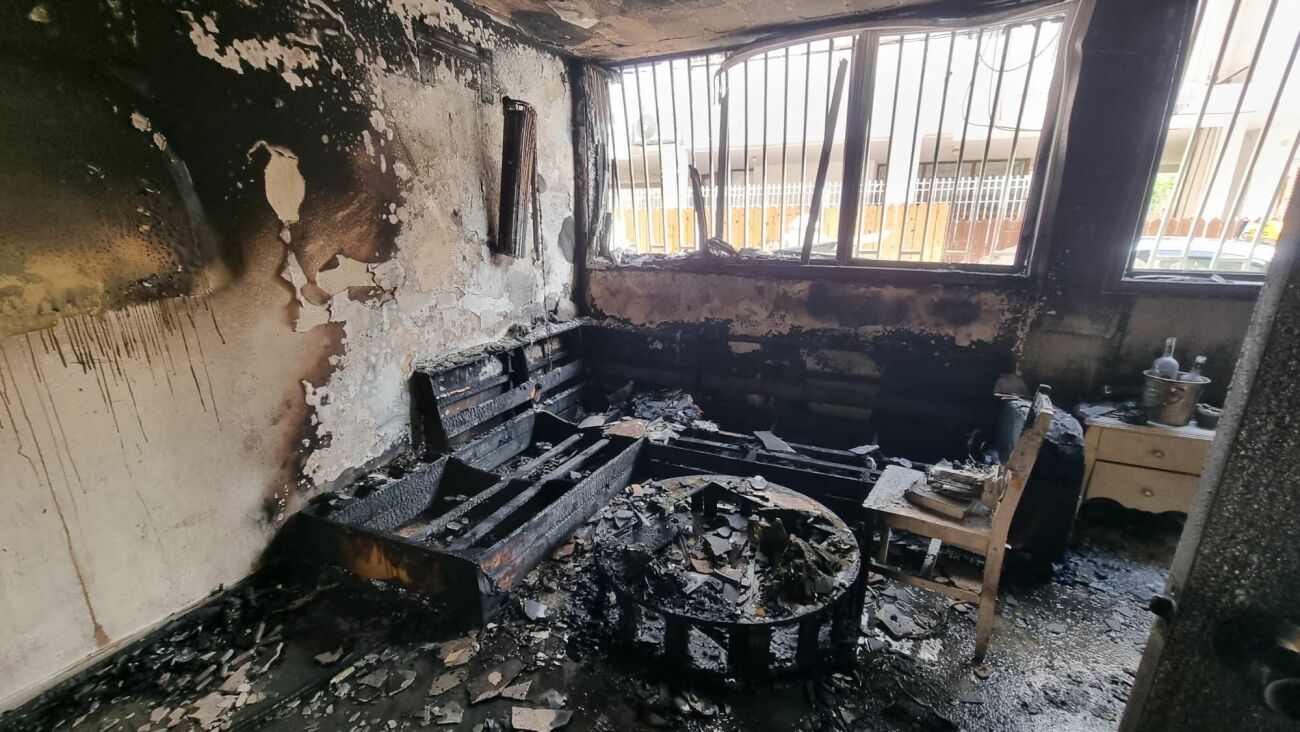 שני צוותים ומנוף בפיקוד מפקד המשמרת רשף מורן פקס פעלו בשריפה בדירה בקומת הקרקע בבניין בן שתי קומות.
