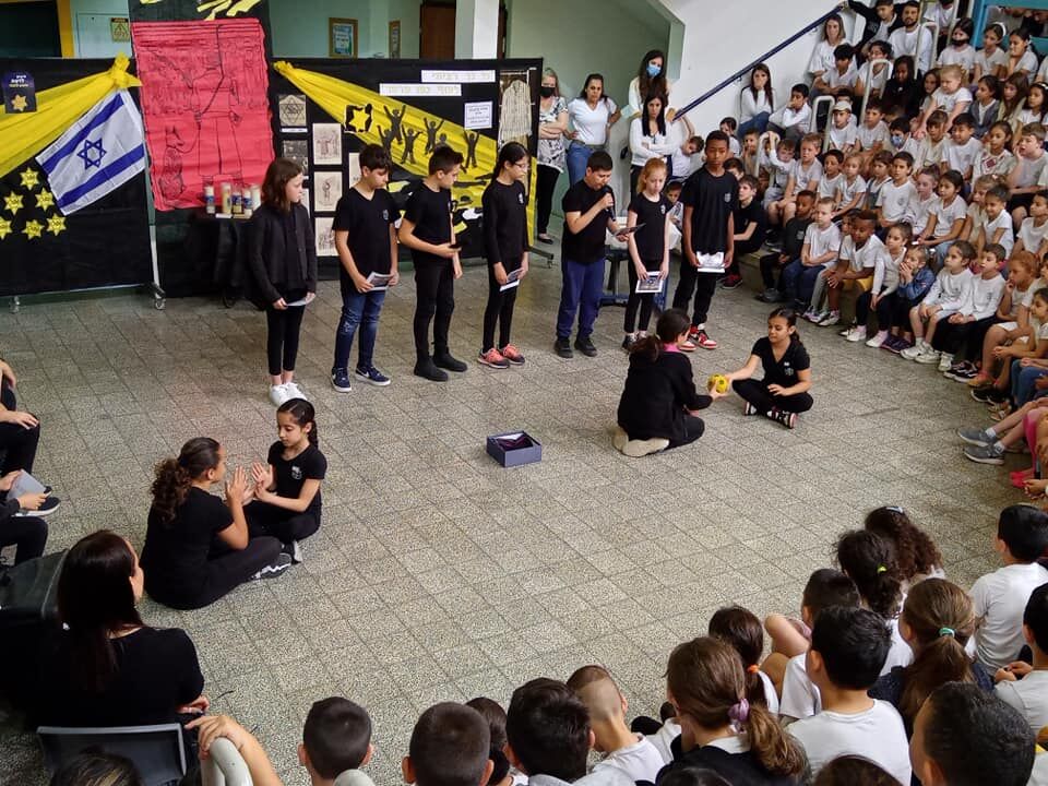 תלמידי כיתות ה' בבית הספר, יחד עם המחנכות נאוה לוי ואלינור בכור הציגו את טקס הזיכרון המנציח את הילדים שנרצחו במהלך מלחמת העולם השנייה.