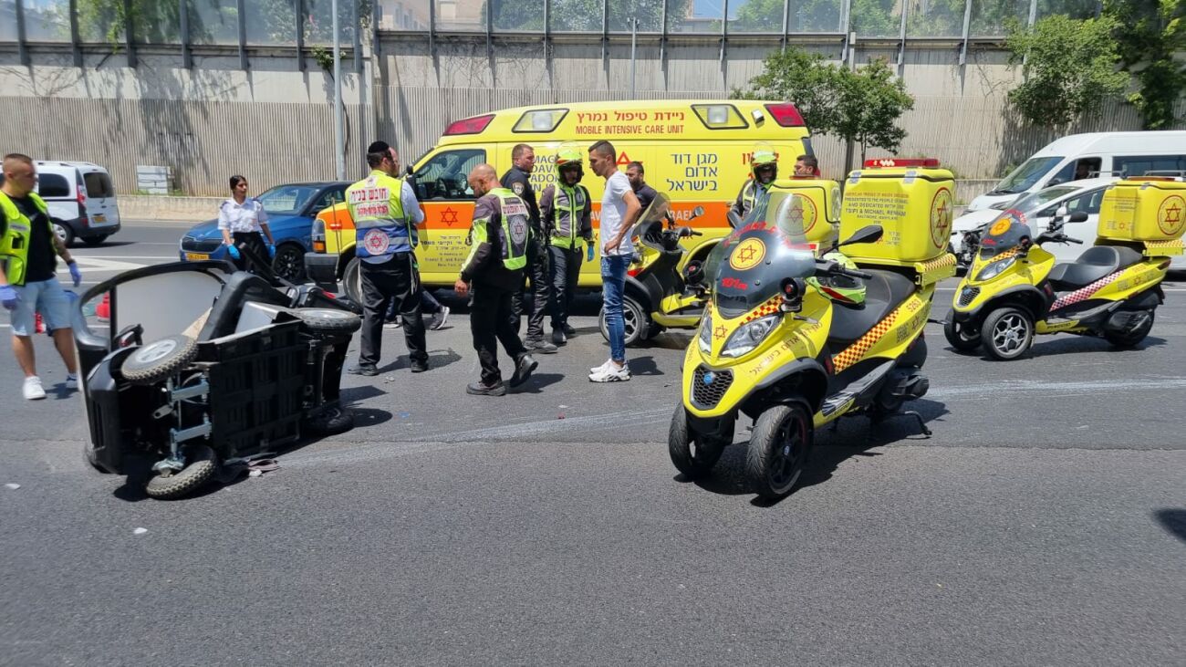"הפצוע שכב בסמוך לקלנועית כשהוא מעורפל הכרה וסובל מחבלת ראש קשה מאוד. מיד התחלנו להעניק לו טיפול רפואי מציל חיים בשטח שכלל חבישות, עצירת דימומים ומתן תרופות ופינינו אותו בניידת טיפול נמרץ לבית החולים כשמצבו קשה. נהג הרכב טופל במקום ופונה גם הוא לבית החולים כשמצבו קל."