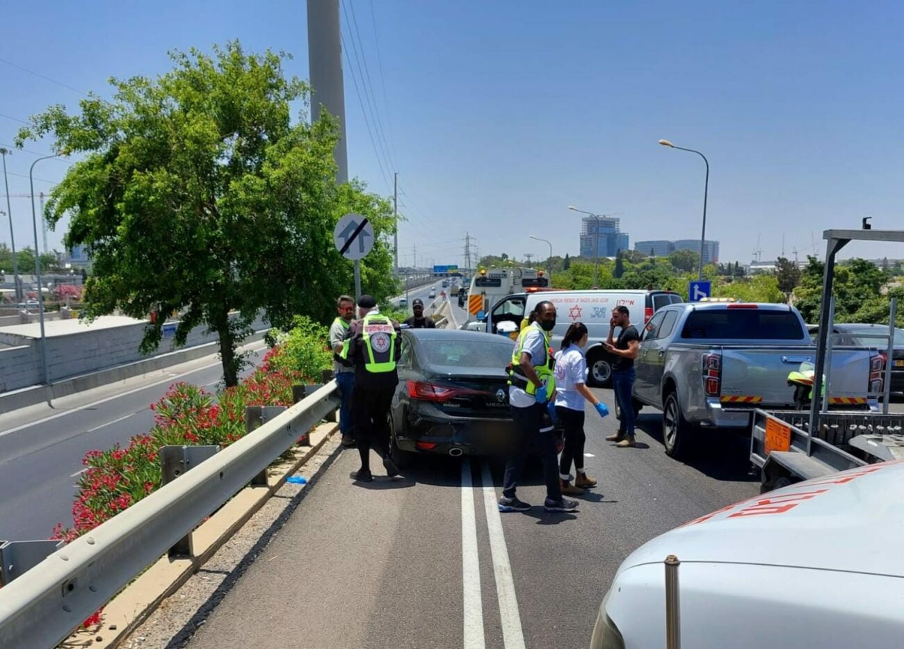 היום 31.5 בשעה 12:02 התקבל דיווח במוקד 101 של מד"א במרחב איילון על רכב שהתנגש במעקה בטיחות בכביש 20 סמוך למחלף קוממיות.
