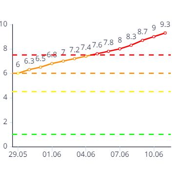 מקדם ההדבקה 1.44- מקדם ההדבקה עבר את 1 כלומר הקורונה נמצאת בהתפשטות.