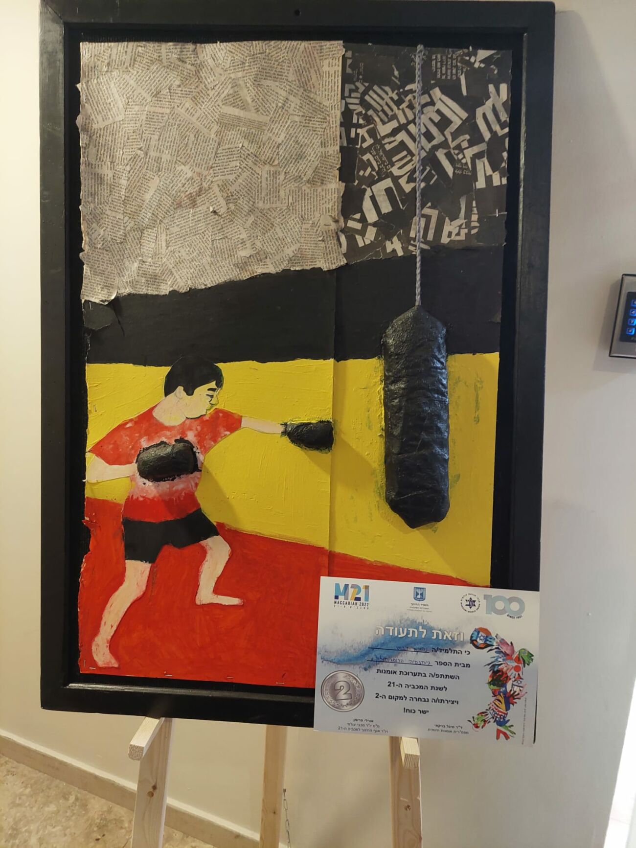 בתערוכת ספורט המוקמת בכפר המכבייה לרגל פתיחת תחרות המכבייה ה - 21 בישראל מוצגות 10 עבודות של תלמידי חטיבת הביניים הרצוג בחולון