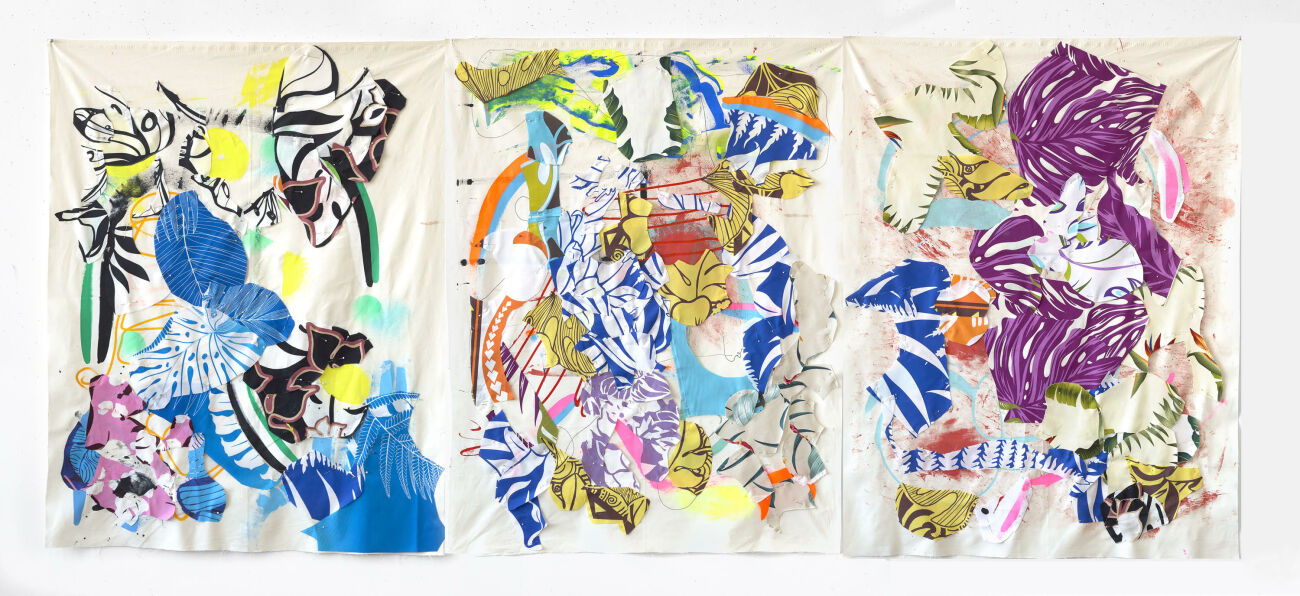 "אני מתעניינת בחומריות של הציור ומחפשת חוויה ויזואלית בלתי צפויה, כזו שמחזיקה גם במתח וגם בהרמוניה והיא מוזרה ועם זאת מוכרת", אומרת רות אדלר, " הציורים/קולאז'ים שלי נוצרים בתהליך של ניסוי ואימפרוביזציה. החומרים שלי הם דיו על בסיס מים, צבע אקרילי, מרקרים, ספריי צבע ושאריות טקסטיל. אני מציירת, חותכת ותופרת כדי להרכיב את הציורים/קולאז'ים שלי.