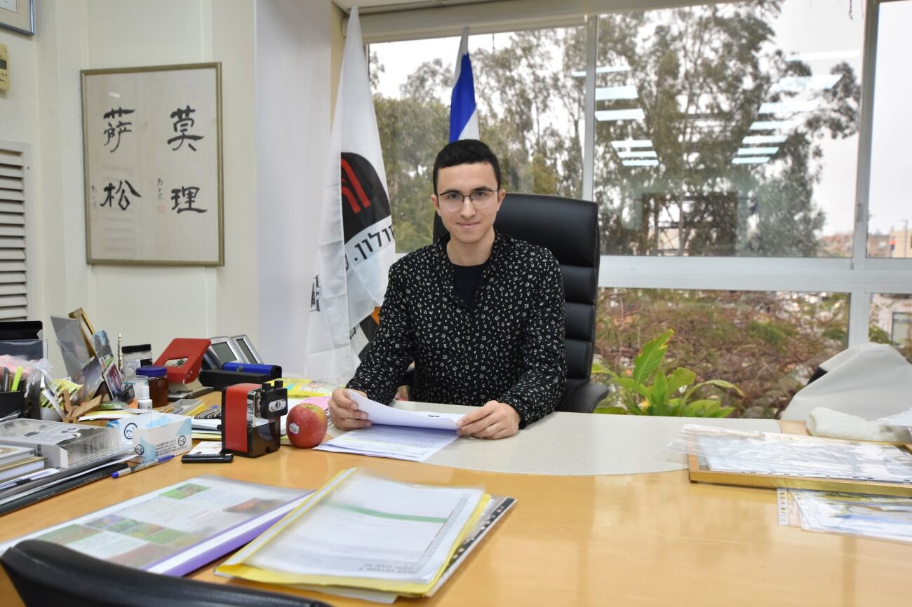 אביב פיינה בן 19 ,תלמיד מחונן לפסתנר בקונסרבטוריון שטיינברג מרכז המוסיקה העירוני, ליווה את ראש העיר.